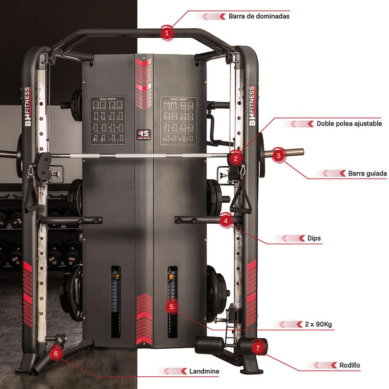 Compra en Decathlon Fitness Multiestación Rack Smith G160 Semiprofesional La nueva Rack Smith de BH Fitness ofrece una amplia gama de más de 32 ejercicios diferentes en una sola máquina.
