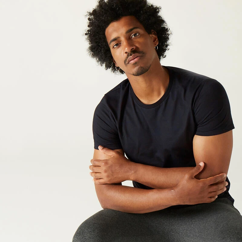 Camiseta Fitness Manga Corta 100% Algodón Hombre Domyos Negro