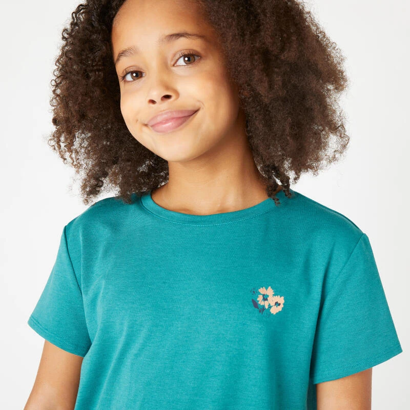 Compra en Decathlon Camiseta gimnasia deportiva manga corta algodón Niños Domyos 500 La camiseta para la vida diaria, de algodón y lyocell, para acompañar a los niños en sus actividades, tanto en casa como en el patio del colegio.