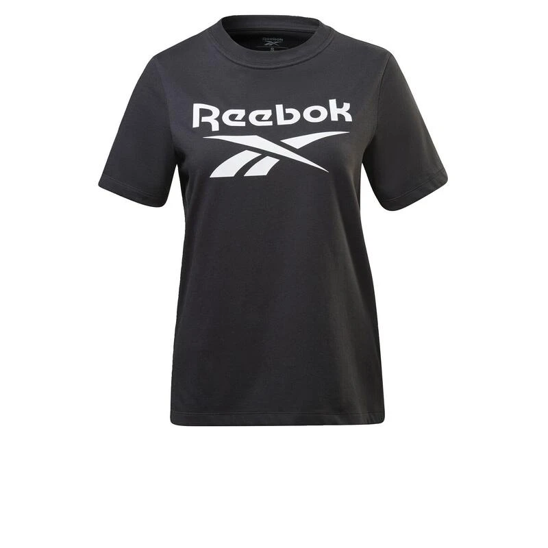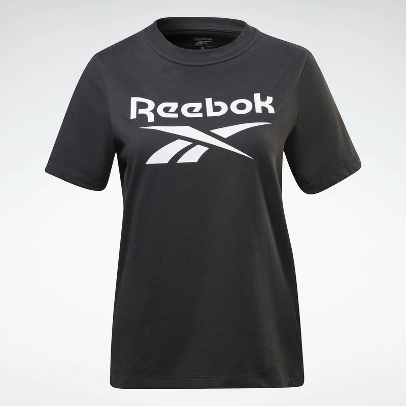 Compra en Decathlon Camiseta Manga Corta Mujer Reebok Identity Negro Esta camiseta para mujer, parte de la colección REECYCLED, está confeccionada en tejido suave de punto tan cómodo que es ideal para llevarla todo el día y luce un logo Vector en la parte delantera.