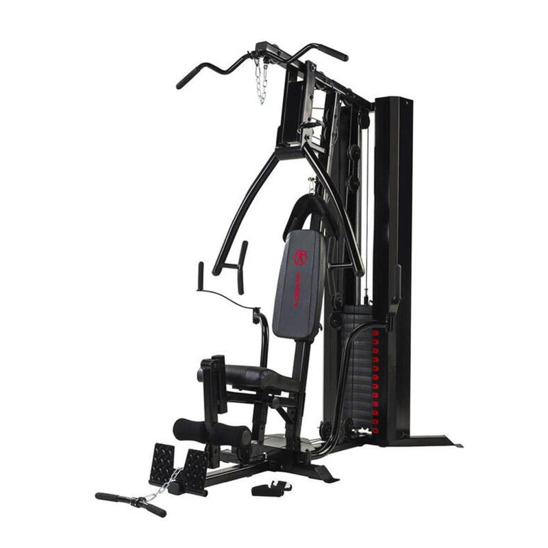 Compra en Decathlon Multiestación – acero – Eclipse HG5000 Deluxe negra Esta máquina tiene el sistema de poleas altas y bajas, una tercera polea y un pasador de resorte retráctil que permite seleccionar 6 ángulos diferentes. Para los experimentados.