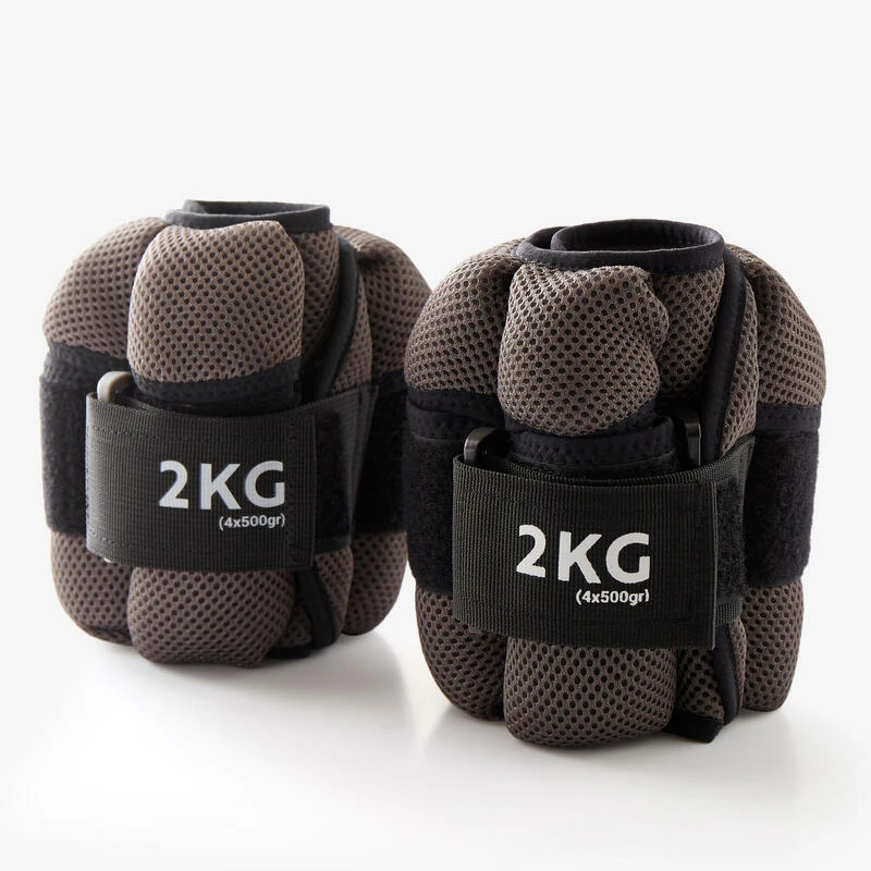 Compra en Decathlon Pesas Tobilleras Lastres Fitness Modulables 2 kg Gris Con estas pesas flexibles que se sujetan alrededor de los tobillos y las muñecas, puedes hacer sesiones de refuerzo muscular manteniendo las manos libres.