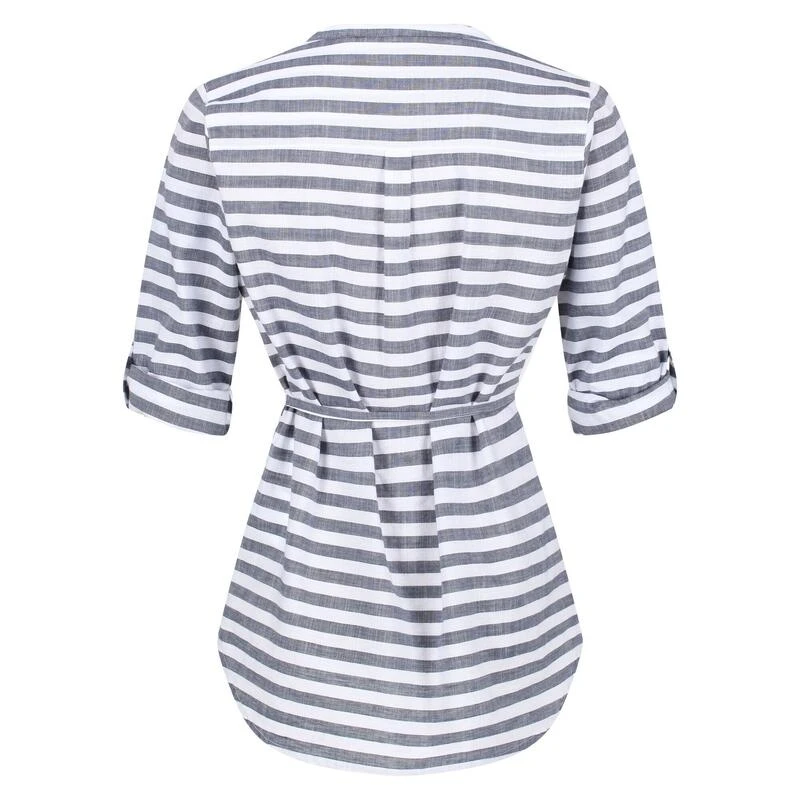 Regatta Camisa Malaya De Rayas De Manga Larga Para Mujer Blanco, Marino