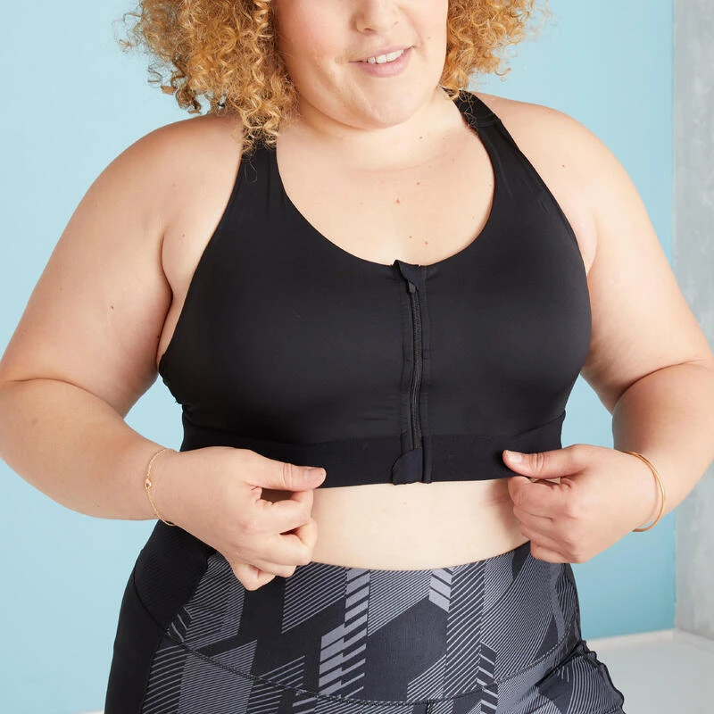 Compra en Decathlon Sujetador top deportivo fitness sujeción alta 920 Mujer Domyos Sujetador top deportivo con un tipo de sujeción fuerte; reduce un 44% de impacto. Es ajustable gracias a su cremallera delantera. Con relleno integrado.